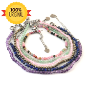 Set of 6 Natural Small Beads Stone Bracelets – 3 mm Faceted Crystal Beads (Amethyst, Rose Quartz, Pyrite, Lapis, Green Aventurine & Multi Tourmaline)